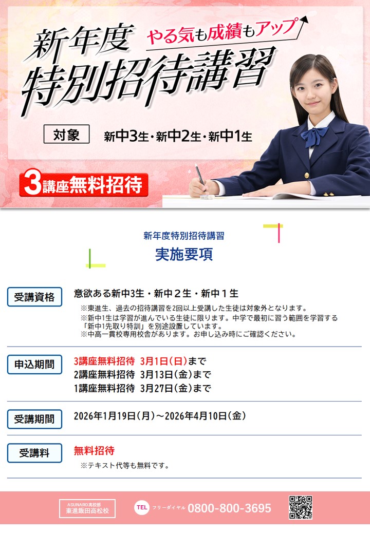 【受付中!】東進中学NET 新年度特別招待講習